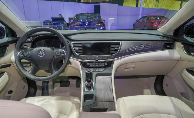 车内设计显旧,延续上代别克风格,四幅方向盘配木纹饰板,非年轻偏好。但目标受众多为30至35岁以上,故无大碍。
